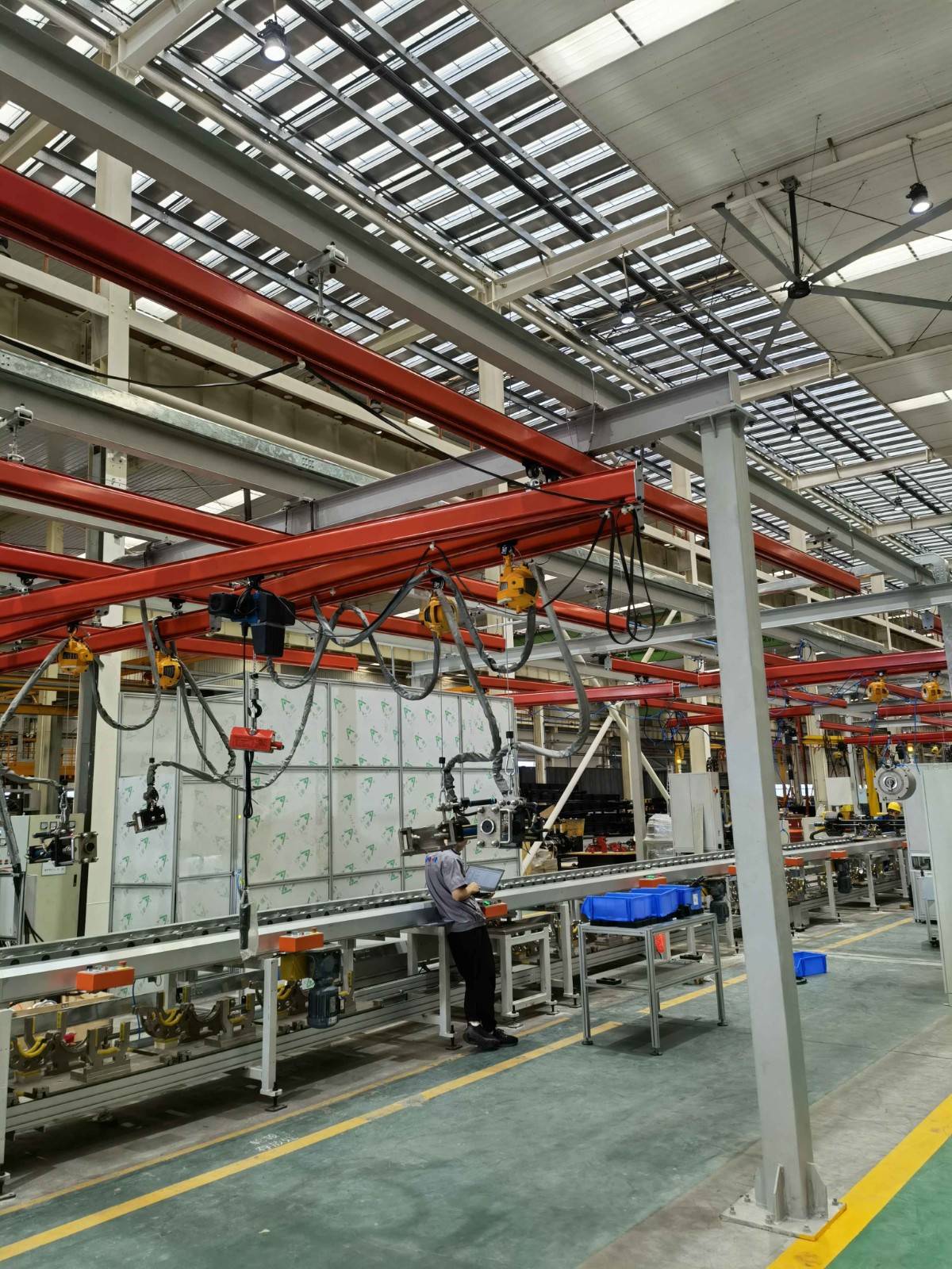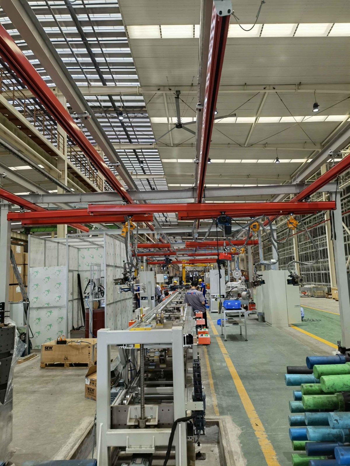 KBK起重機(jī)標(biāo)準(zhǔn)組件。由懸掛裝置、軌道、道岔、行走小車、電動(dòng)葫蘆、移動(dòng)供電裝置(滑線)以及控制裝置等組件組合而成,起升裝置主要采用環(huán)鏈電動(dòng)葫蘆,也可吊掛一些機(jī)械手或焊槍之類,作為工具滑軌使用,起重量一般2000kg。只需簡(jiǎn)單地懸掛在廠房頂板或梁架上便可實(shí)現(xiàn)物料的空中直接輸送,因此被廣泛地應(yīng)用于各行各業(yè)的物料輸送環(huán)節(jié)或系統(tǒng)。