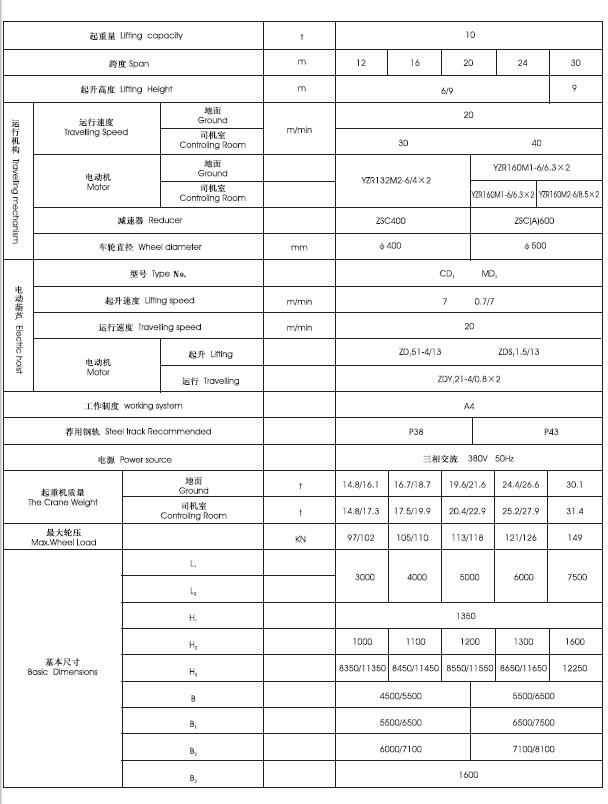 2、 適用起重量3-16噸,適用跨度12-30米,工作環(huán)境-20℃- +40℃內(nèi)。