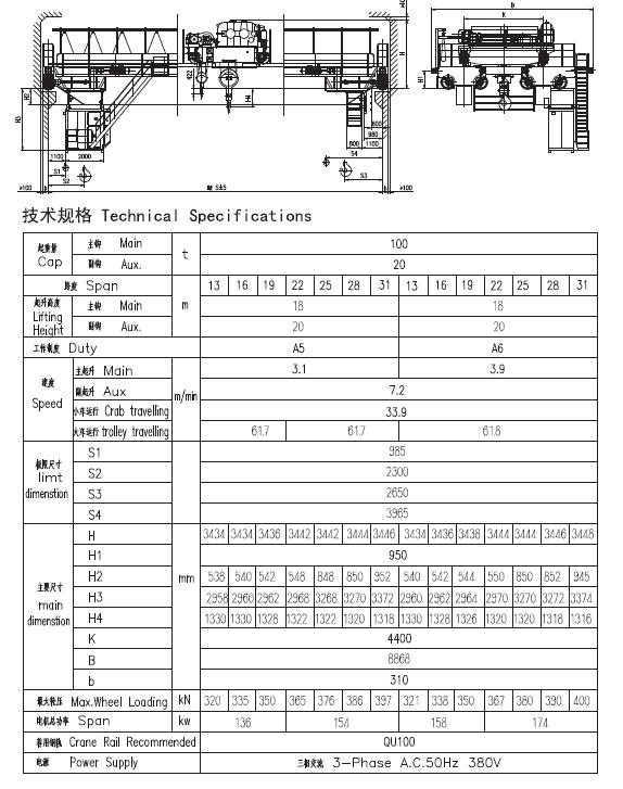 二、 產品簡圖及技術規(guī)格(QD100/20t)